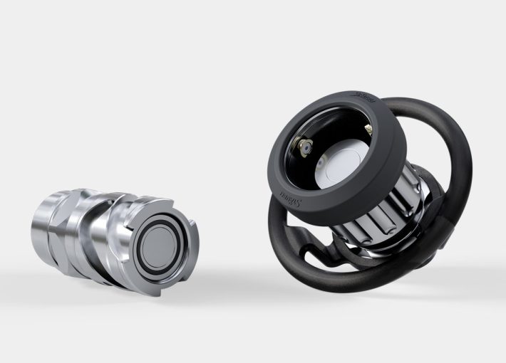 ワンタッチカップリングは、押す・引くといった単純動作で着脱が可能です。耐熱グローブを装着したままでも確実に操作でき、作業性が大幅に向上しました。